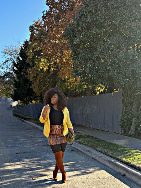 * Faux leather/suede skirt , elasticized waist, patch front pockets, and a removable belt with belt loops