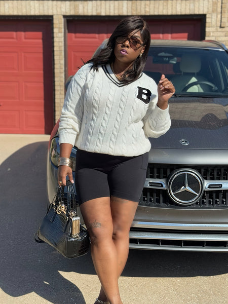 * V-Neck cable knit Sweater perfect to pop out with your favorite pair of shorts or black jeans