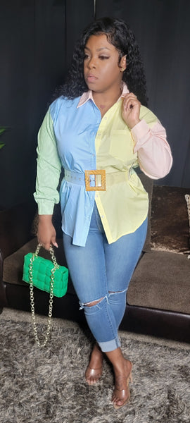 * POPLIN STRIPE SOLID MIX COMBO BLOCK SHIRT
