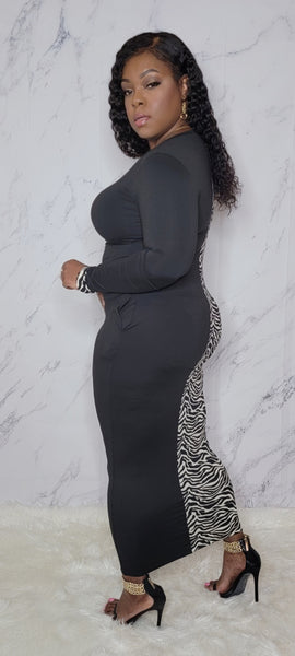 * Zebra color block bodycon maxi dress