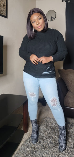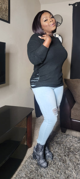 * Knit Side Distressed Long Cozy Sweater