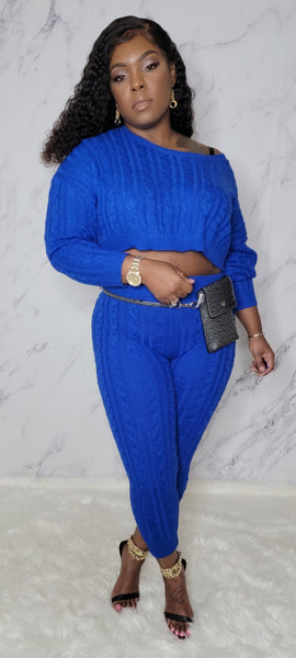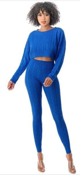 * Cable Knit Sweater Set - Long Sleeve Pullover High Waist Legging ,Elastic Waistband -