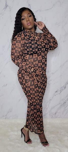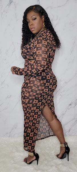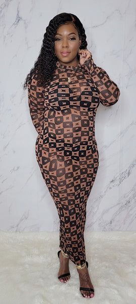 * Checker Pattern Mesh Dress